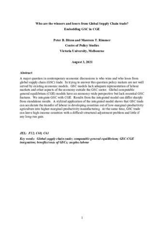 Winners and losers in global supply chain trade: embedding GSC in CGE.