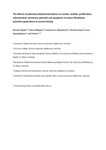 The effects of polarized photobiomodulation on cellular viability, proliferation, mitochondrial membrane potential and apoptosis in human fibroblasts: potential applications to wound healing.