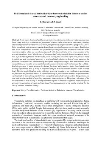 Fractional and fractal derivative-based creep models for concrete under constant and time-varying loading.