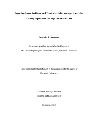 Armstrong, Samantha J (2023) Exploring Stress Resilience and Physical Activity Amongst Australian Nursing Populations During Coronavirus 2019. PhD thesis, Victoria University.