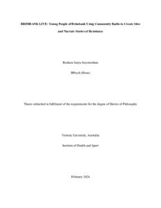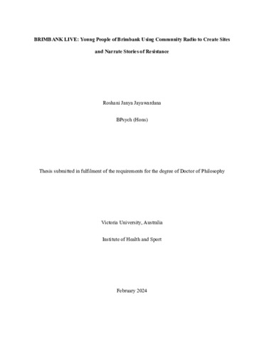 Jayawardana, Roshani J (2024) BRIMBANK LIVE: Young People of Brimbank Using Community Radio to Create Sites and Narrate Stories of Resistance. PhD thesis, Victoria University.