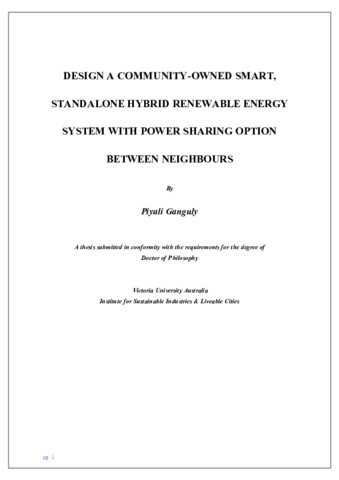 Ganguly, Piyali (2023) Design a Community-Owned Smart, Standalone Hybrid Renewable Energy System with Power Sharing Option Between Neighbours. PhD thesis, Victoria University.