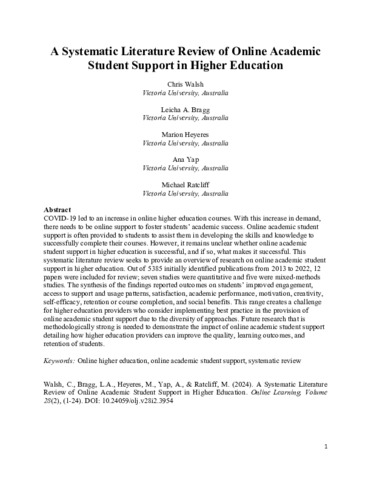 A Systematic Literature Review of Online Academic Student Support in Higher Education.