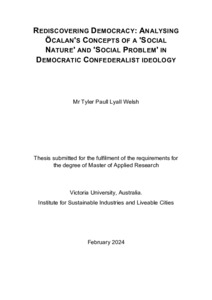 Welsh, Tyler Paull Lyall (2024) Rediscovering Democracy: Analysing Öcalan's Concepts of a 'Social Nature' and 'Social Problem' in Democratic Confederalist Ideology. Research Master thesis, Victoria University.