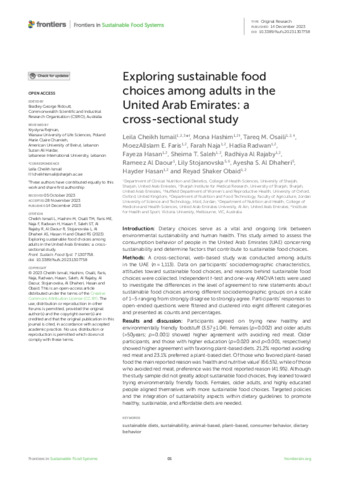 Exploring sustainable food choices among adults in the United Arab Emirates: a cross-sectional study.