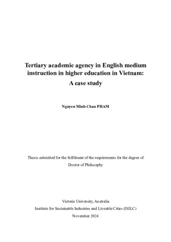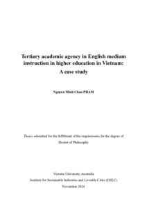 Pham, Nguyen Minh Chau (2024) Tertiary academic agency in English medium instruction in higher education in Vietnam: a case study. PhD thesis, Victoria University.