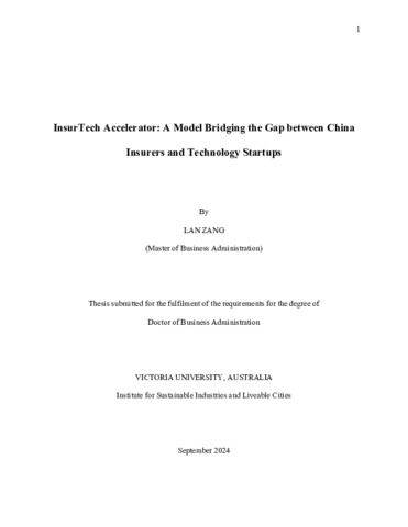 Zang, Lan (2024) InsurTech Accelerator: A Model Bridging the Gap between China Insurers and Technology Startups. Other Degree thesis, Victoria University.