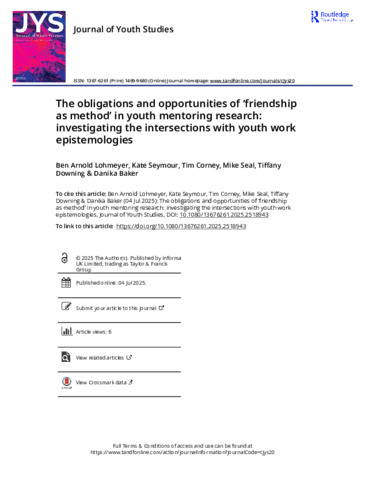 The obligations and opportunities of 'friendship as method' in youth mentoring research: investigating the intersections with youth work epistemologies.