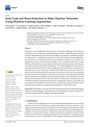 Early Leak and Burst Detection in Water Pipeline Networks Using Machine Learning Approaches.