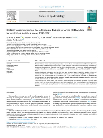 Spatially consistent annual Socio-Economic Indexes for Areas (SEIFA) data for Australian statistical areas, 1996- 2021.
