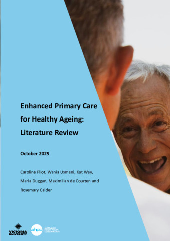 Pilot, C., Usmani, W., Way, K., Duggan, M., de Courten, M., & Calder, R. (2025). Enhanced Primary Care for Healthy Ageing: Literature Review. Victoria University. https://doi.org/10.26196/7K44-DR83