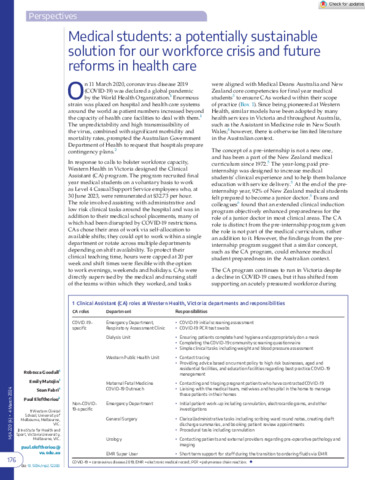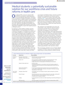 Goodall, Rebecca, Matejin, Emily, Fabri, Sean and Eleftheriou, Paul (2024) Medical students: a potentially sustainable solution for our workforce crisis and future reforms in health care. Medical Journal of Australia, 220 (4). pp. 176-179. ISSN 0025-729X
