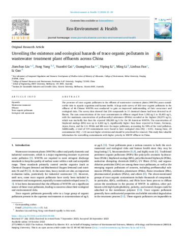 Unveiling the existence and ecological hazards of trace organic pollutants in wastewater treatment plant effluents across China.