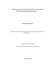 Fath Addin, Mohammed (2024) Public Language and the Construction of Meaning: A Poetics of Recent American Presidential Inauguration Speeches. PhD thesis, Victoria University.
