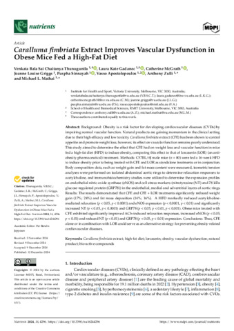 | Keywords | Caralluma fimbriata extract; high-fat diet; lorcaserin; obesity; vascular dysfunction; natural product; bio-active compounds |