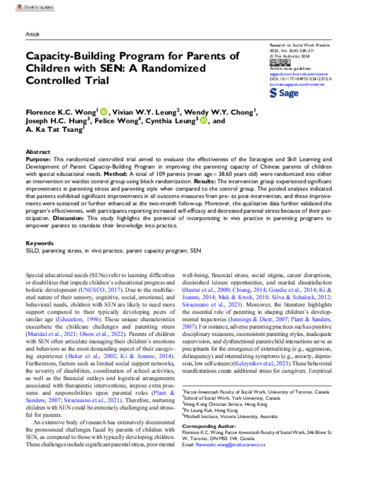 Capacity-Building Program for Parents of Children with SEN: A Randomized Controlled Trial.