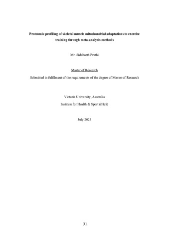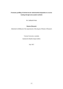 Pruthi, Siddharth (2023) Proteomic profiling of skeletal muscle mitochondrial adaptations to exercise training through meta-analysis methods. Research Master thesis, Victoria University.