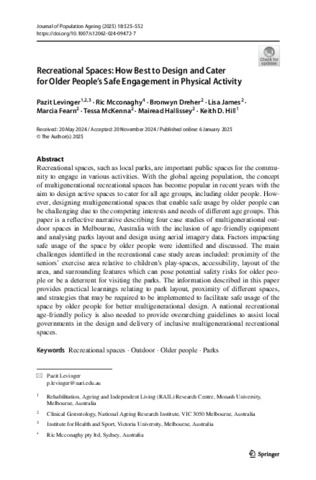 Recreational Spaces: How Best to Design and Cater for Older People’s Safe Engagement in Physical Activity.