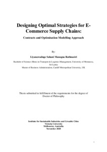 Rathnasiri, Sahani (2020) Designing Optimal Strategies for E-Commerce Supply Chains: Contracts and Optimisation Modelling Approach. PhD thesis, Victoria University.