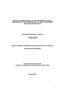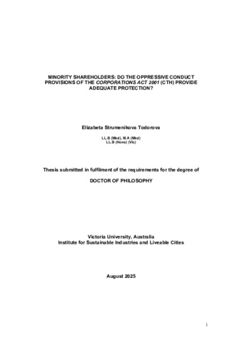 Todorova, Elizabeta Strumenikova (2025) Minority shareholders: do the oppressive conduct Provisions of the corporations act 2001 (cth) provide Adequate protection? PhD thesis, Victoria University.