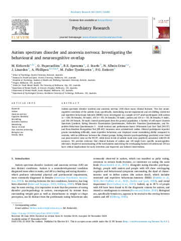 Autism spectrum disorder and anorexia nervosa: Investigating the behavioural and neurocognitive overlap.