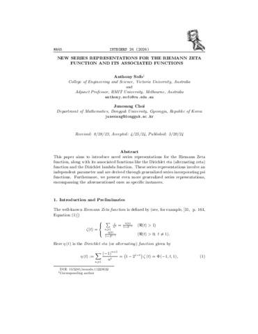 New Series Representations for the Riemann Zeta Function and Its Associated Functions.